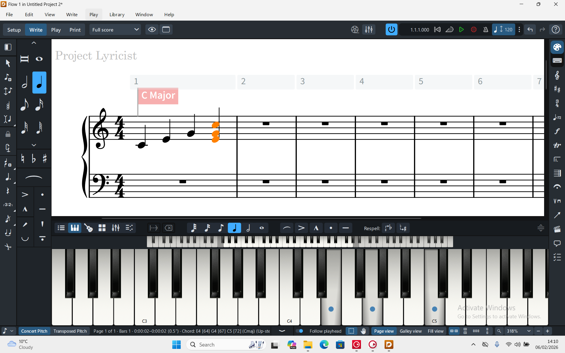 The larger screen has a resolution of 1920 x 1200px (set to 125% scale), which provides a much bigger, better working space and overall user experience. In Dorico, more of the score was viewable without having to zoom or scroll as much, and the additional screen real estate meant that when opening the left or right panels, or using the touchscreen with Dorico’s on-screen piano keyboard in the lower zone, you could still see the notation you were working on much more easily.